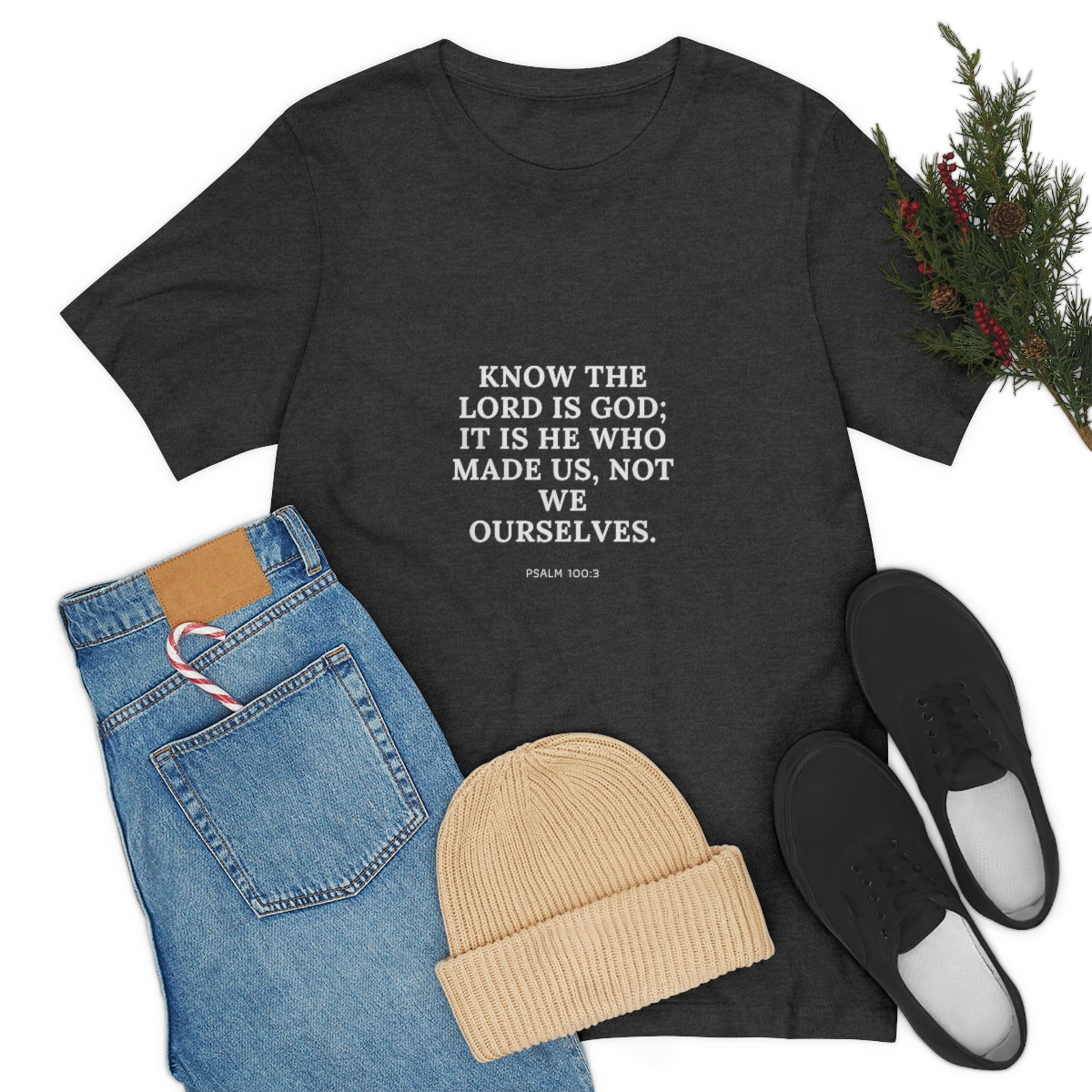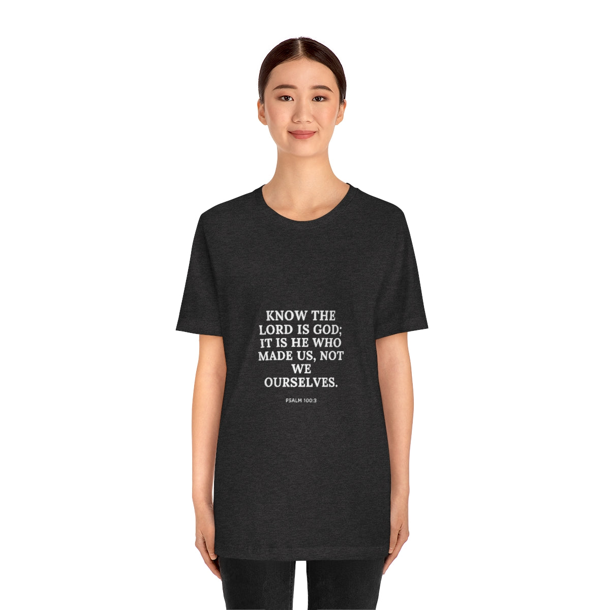 "Know the Lord Is God, It Is He Who Made Us, Not Ourselves" Unisex Jersey Short Sleeve Tee